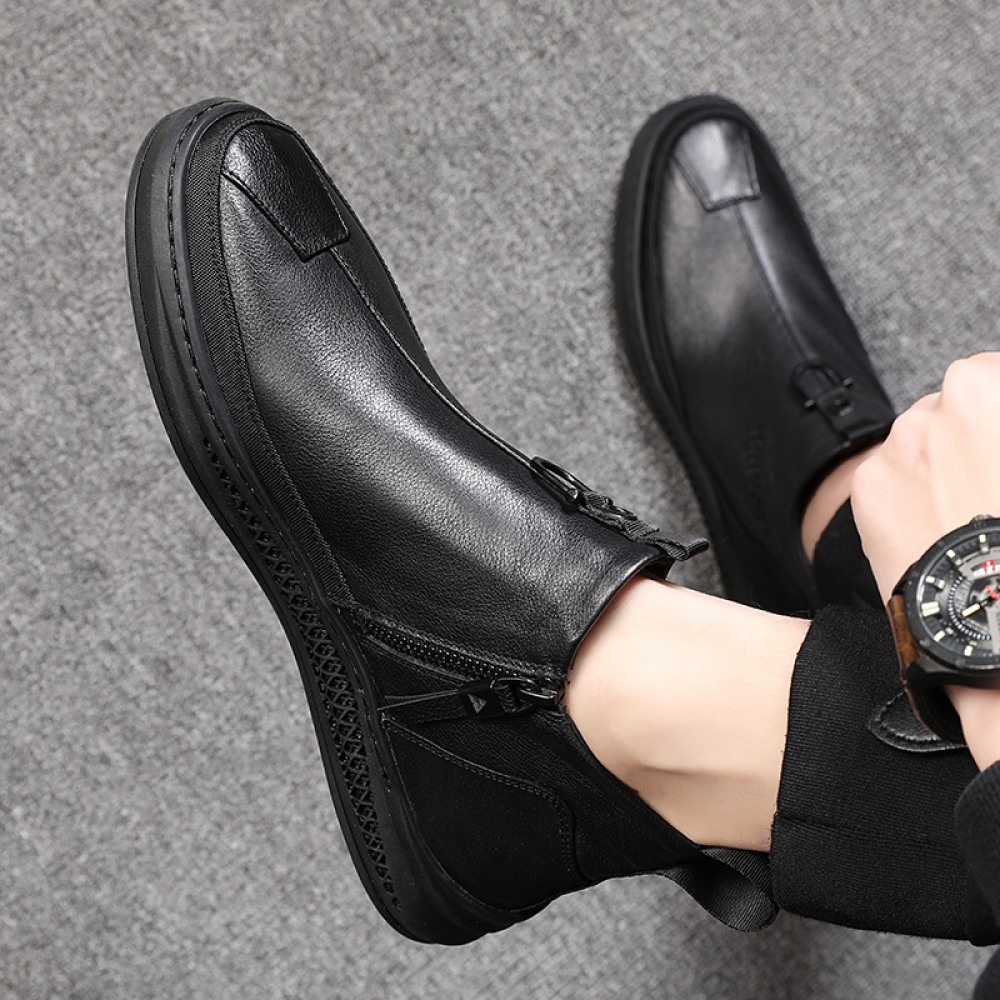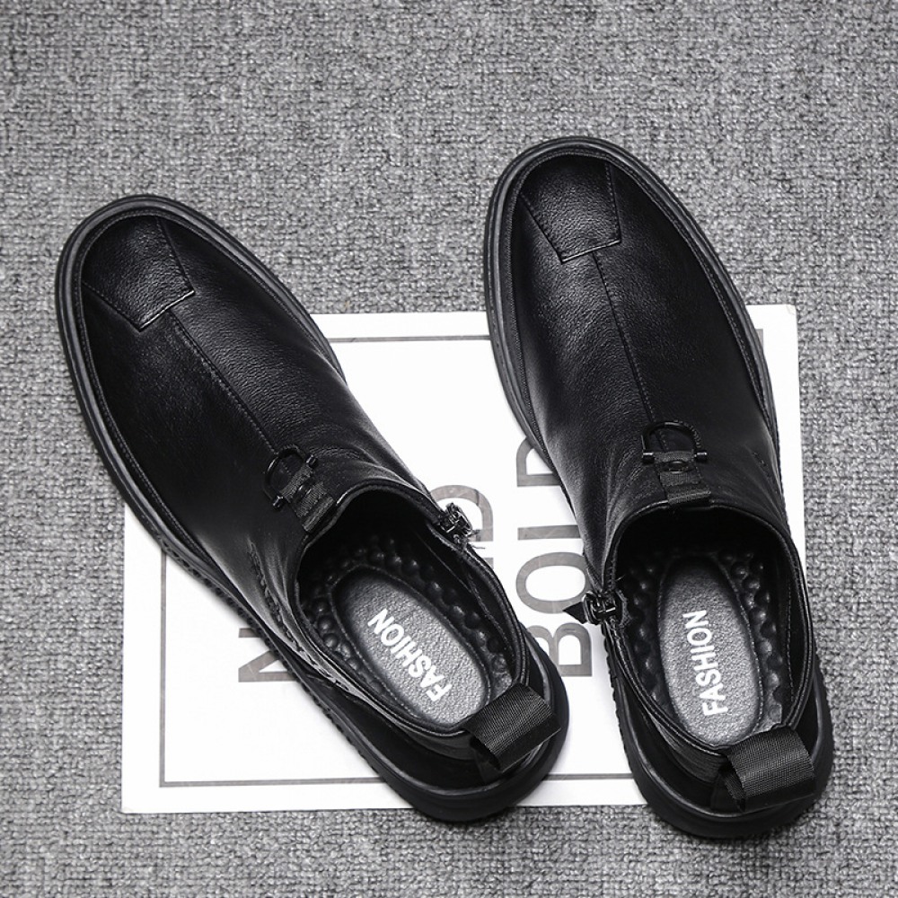Autumn New Men's Casual Trendy Shoes Side Zipper British Leather Boots