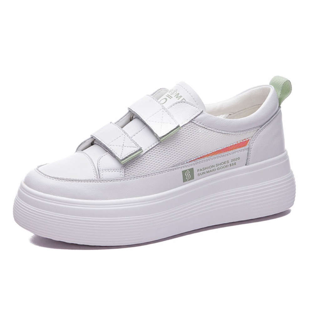 White Women's Spring New Flat-Bottom Heightening Shoes Thin Casual Hollow Breathable Shoes