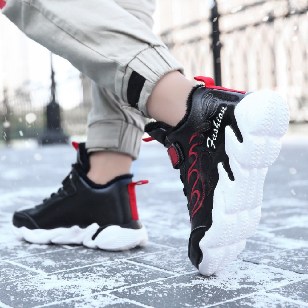 Winter New Children's Big Cotton Shoes Hot Style Plus Wool Warmth Non-Slip Plus Velvet Sneakers