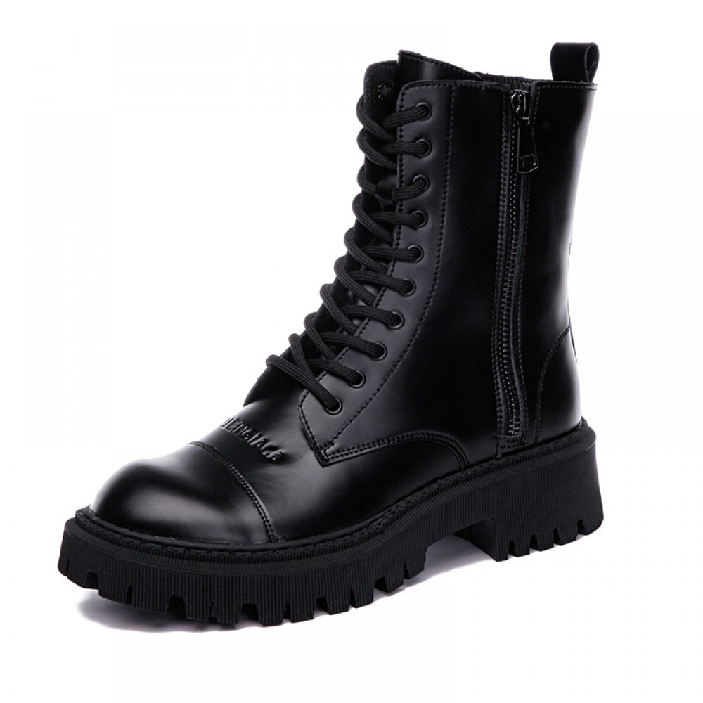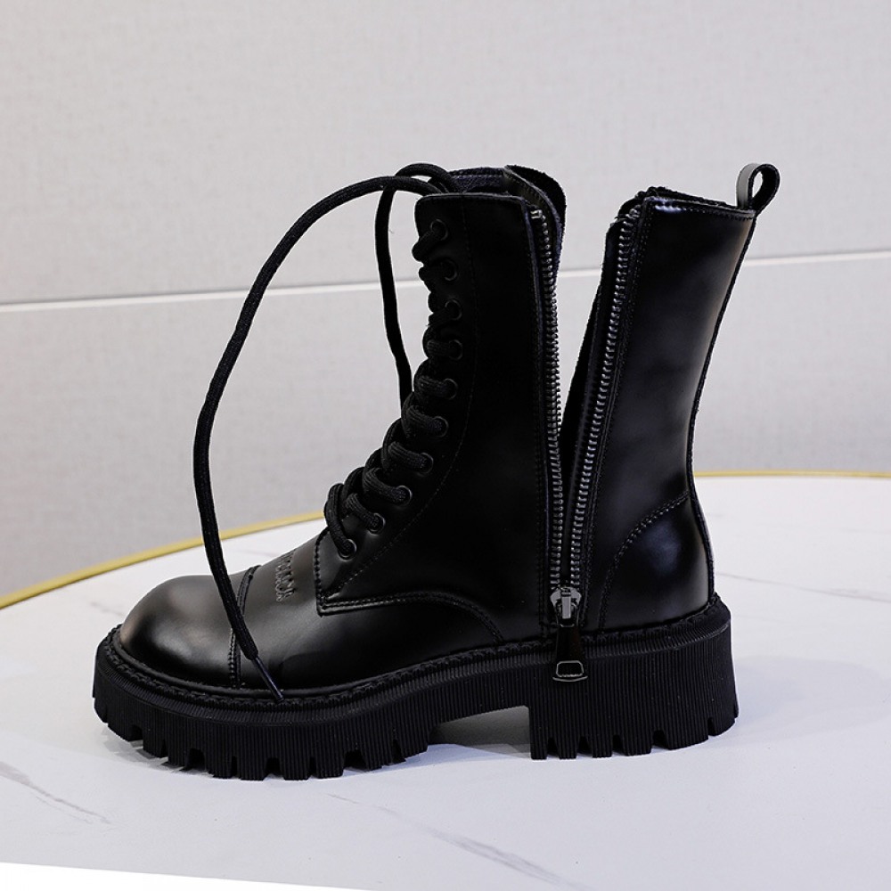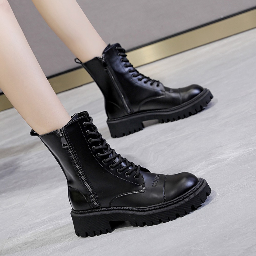 Women's Autumn New Thick-Soled Leather Boots Round Toe Thin Mid-Tube Martin Boots