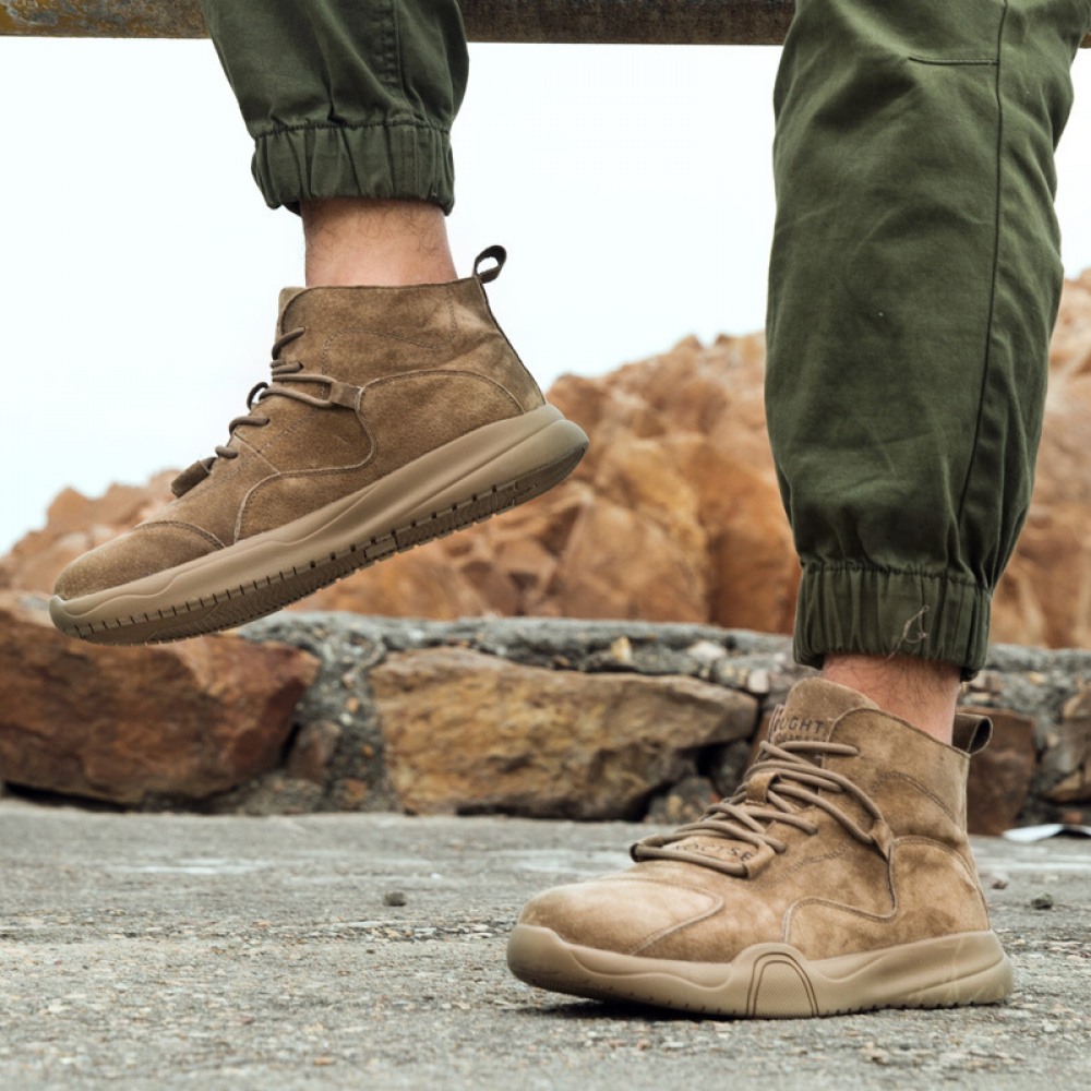 Men's Leather Short Boots Desert Rhubarb Boots New High-Top Martin Boots