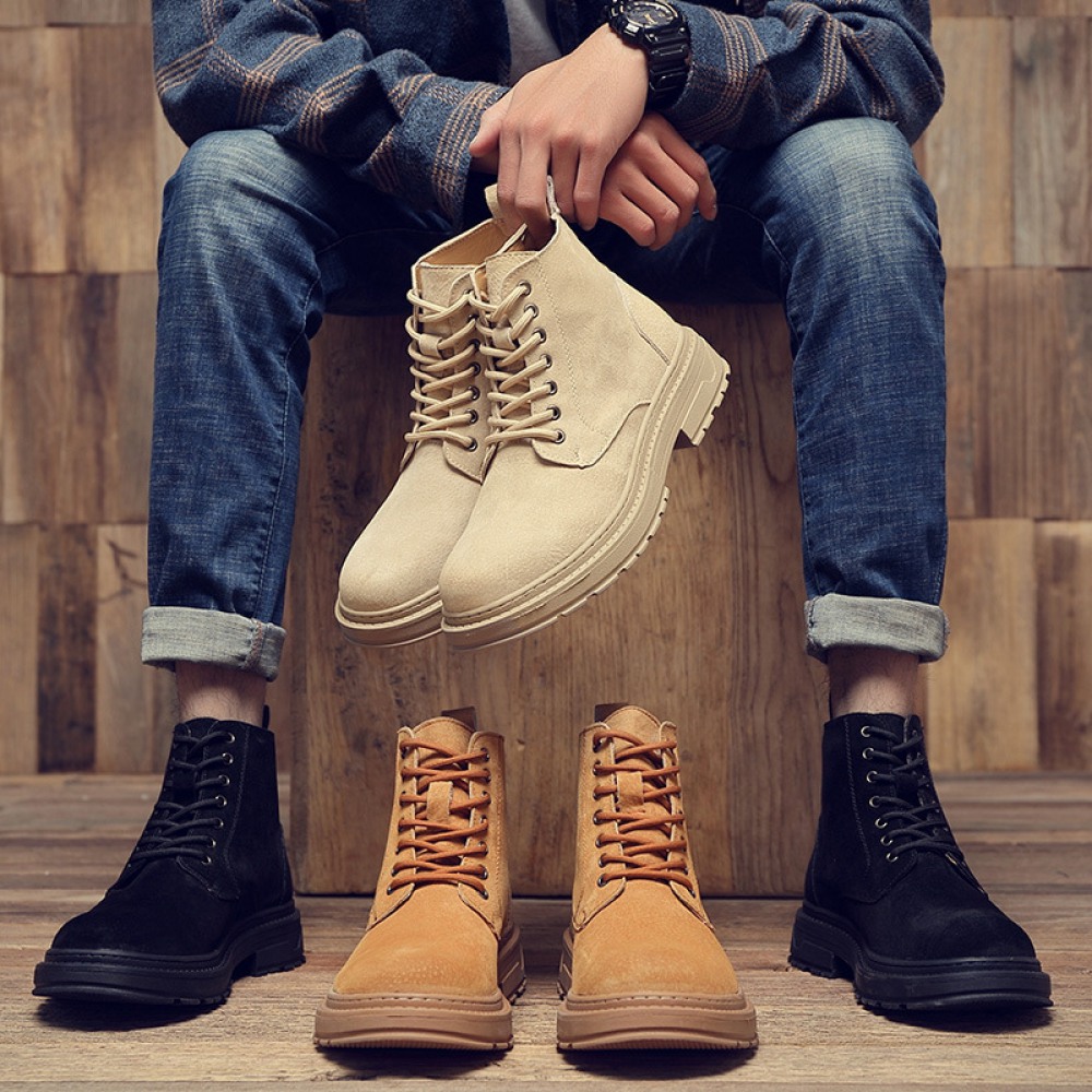 Autumn Men's Mid-Tube Boots Trend British ToolingMiddle-Top Martin Boots