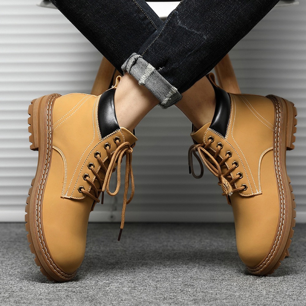 Men's Leather Short Boots Desert Rhubarb Boots New High-Top Martin Boots